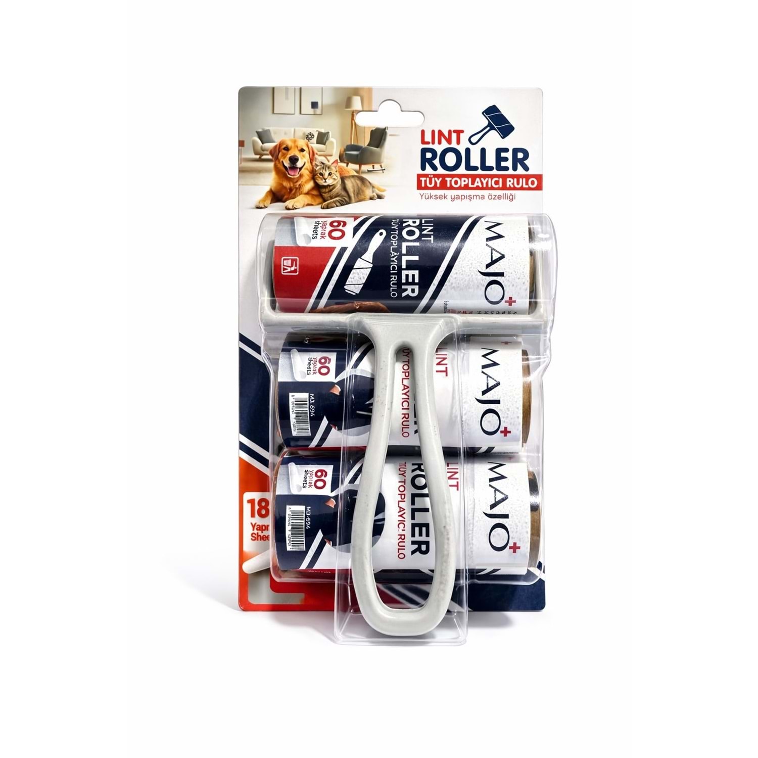 MAJO TÜY TOPLAMA RULOSU – YAPIŞKANLI TÜY TOPLAMA RULOSU (3’LÜ PAKET)