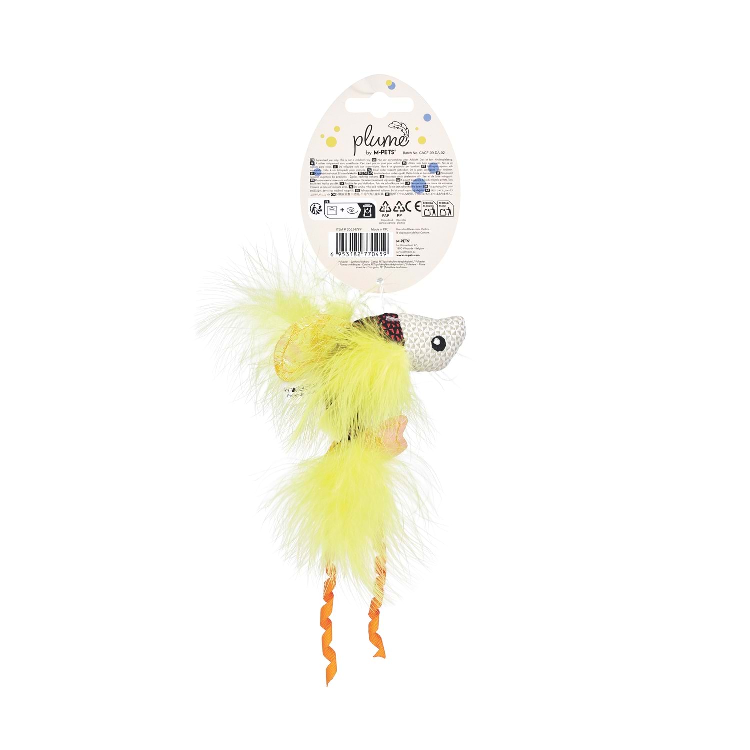 M-PETS Plume Yellow Fish Catnipli Kedi Oyuncağı, kedilerin oyun ve avlanma içgüdülerini destekleyerek onların daha aktif ve keyifli vakit geçirmesine yardımcı olan eğlenceli bir oyuncak çözümü sunar.