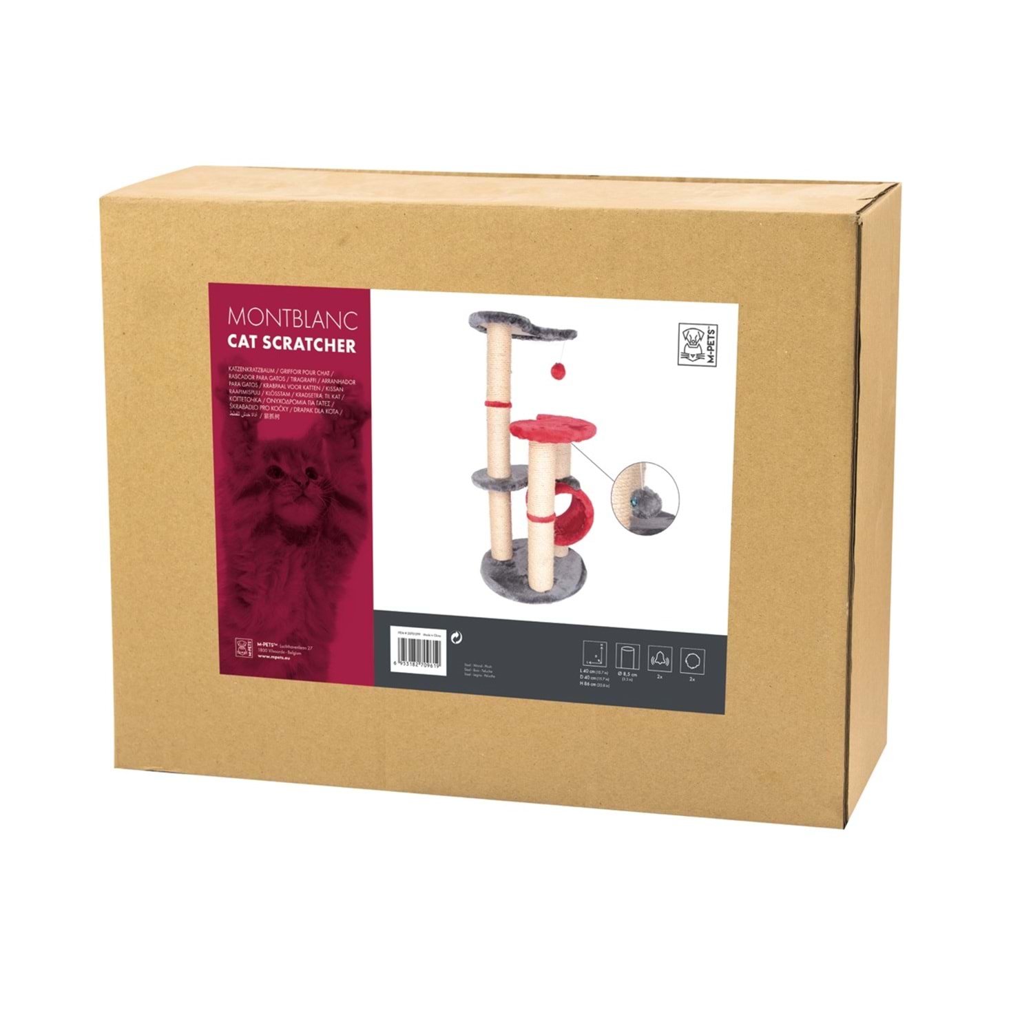 M-PETS MONTBLANC – KEDİ TIRMALAMA AĞACI (DOĞAL TIRMALAMA İPLİ / KIRMIZI & GRİ)