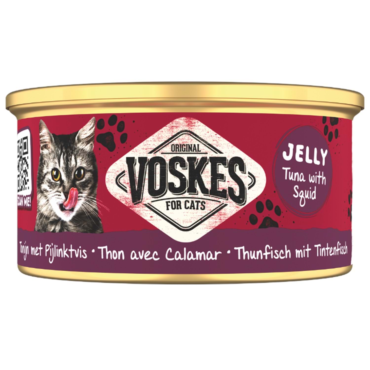 Voskes Ton Balığı ve Kalamarlı Kedi Konservesi, %51 ton balığı ve %6 kalamar içeriğiyle deniz ürünlerini seven kedilere özel olarak hazırlanmıştır.