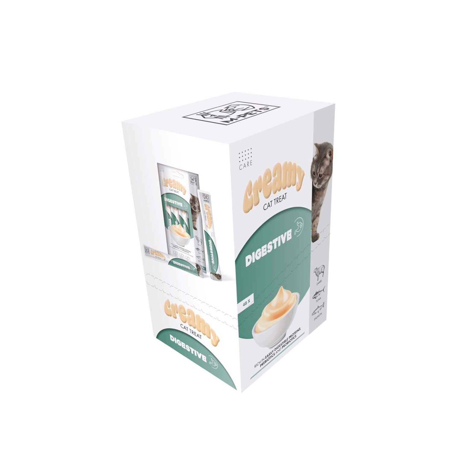 M-PETS Creamy Digestive, kedinizin sindirim sistemini destekleyen sağlıklı ve lezzetli bir atıştırmalık sunar.