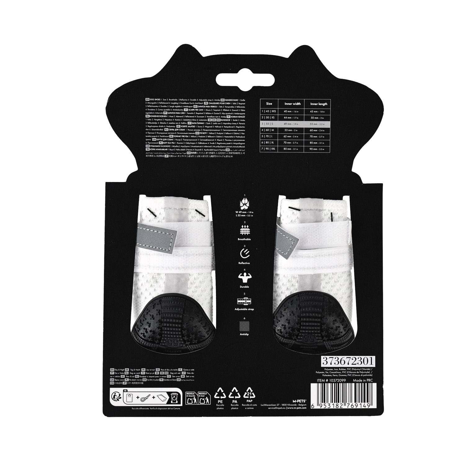 M-PETS FLEXI Köpekler İçin Ayakkabı, nefes alabilen yapısı, kaymaz tabanı ve ayarlanabilir kayış sistemiyle patilerin gün boyu korunmasına yardımcı olur. Day & Night konsepti sayesinde hem gündüz hem de düşük ışık koşullarında görünürlük sunar. Dayanıklı taban yapısı, ıslak ve kaygan zeminlerde güvenli tutuş sağlarken hafif ve esnek tasarımı patinin doğal hareketini destekler.