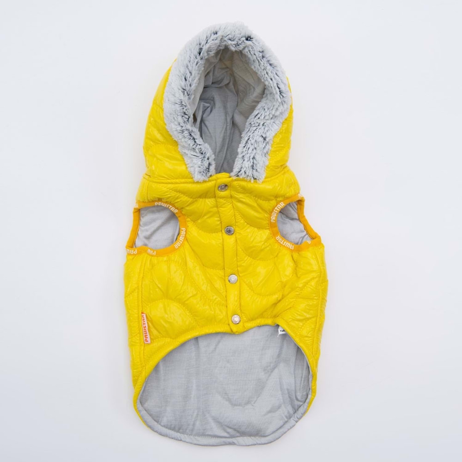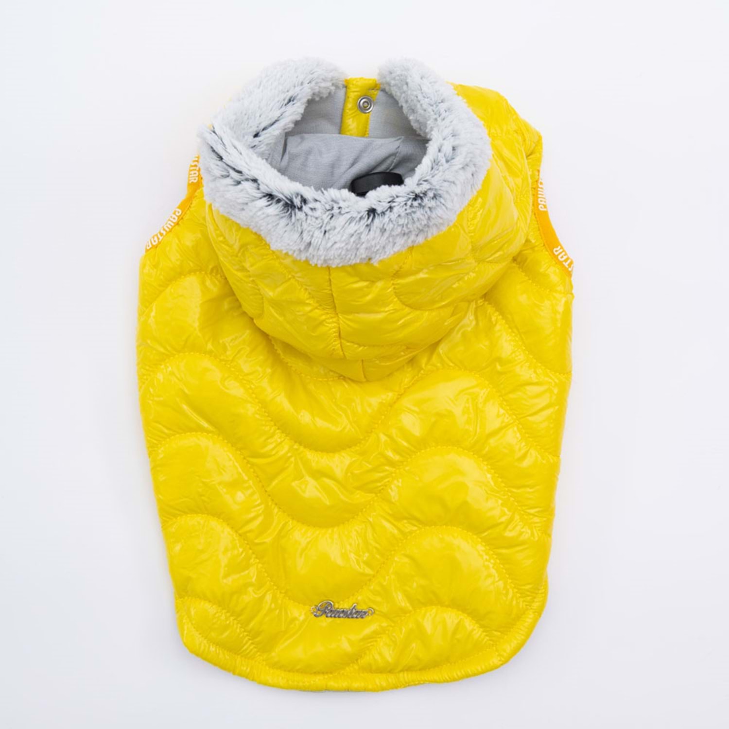 PAWSTAR Sarı Light Wave Yelek, su itici yapısı, sıcak tutan dolgusu ve şık kapüşon detaylarıyla soğuk havalarda köpekler için konforlu ve stil sahibi bir dış giyim çözümü sunar.