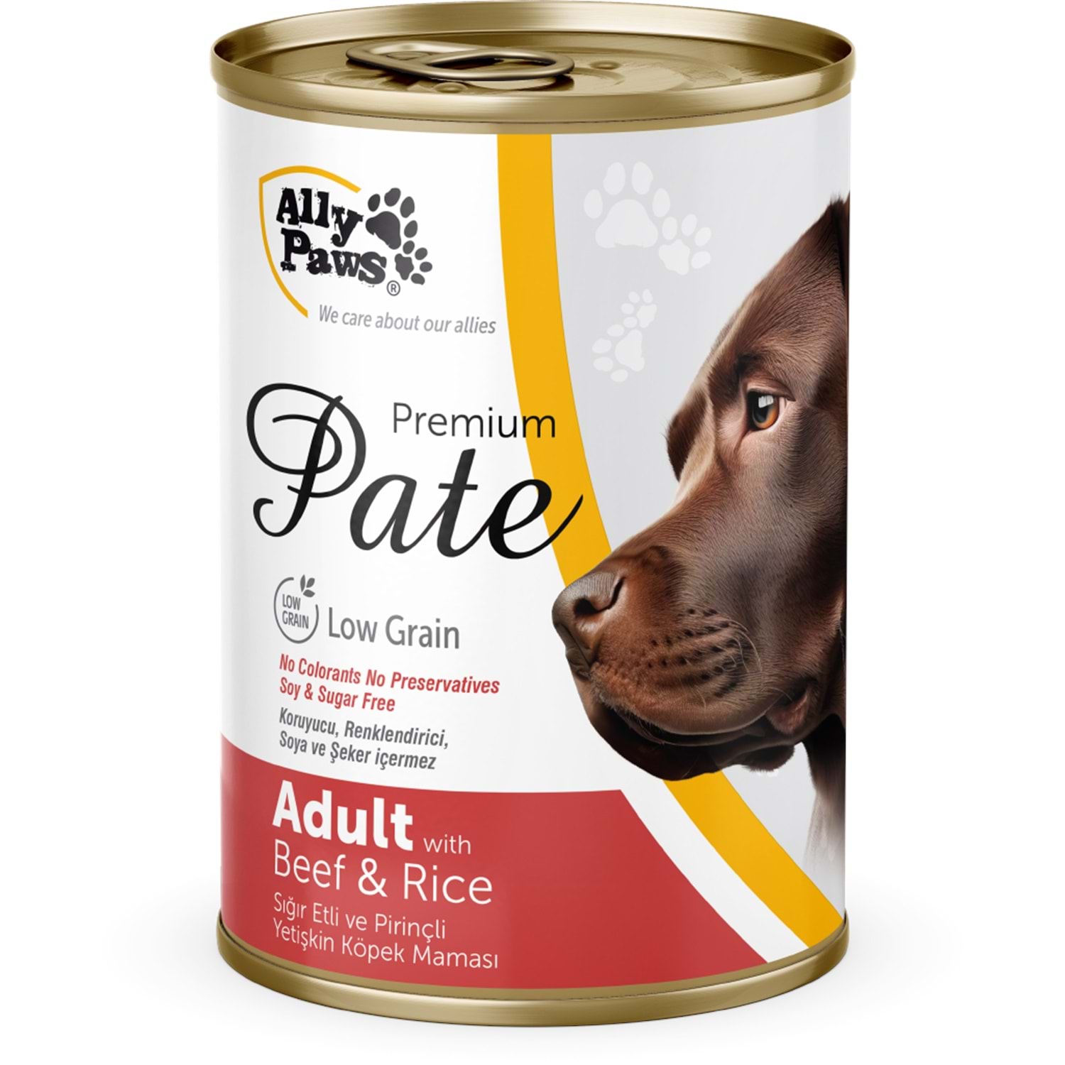 ALLY PAWS PATE BİFTEKLİ VE PİRİNÇLİ – KÖPEK KONSERVE MAMASI (400 G x 12 ADET)