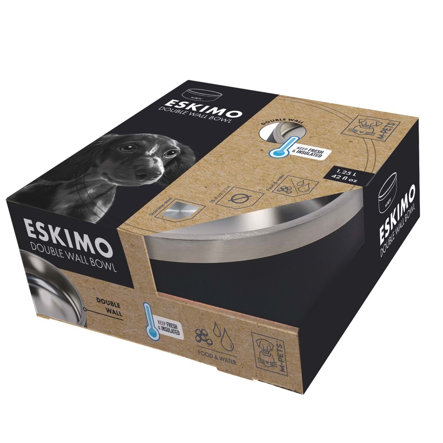 M-PETS Eskimo Double Wall Bowl Black, dostunuzun mama ve su keyfini estetik ve teknolojiyle buluşturur.