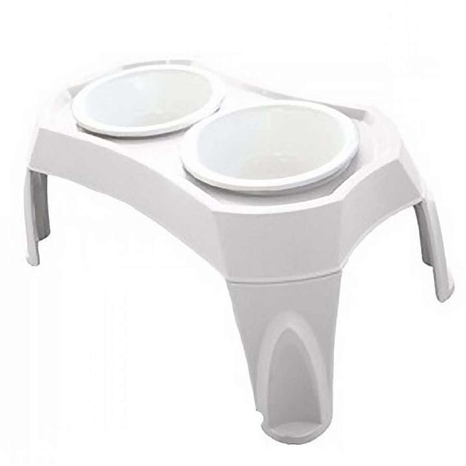 M-PETS COMBI AYAKLI MELAMİN MAMA KABI (XL) – YÜKSELTİLMİŞ ÇİFTLİ MAMA & SU KABI (2 x 1500 ML) – GRİ/BEYAZ