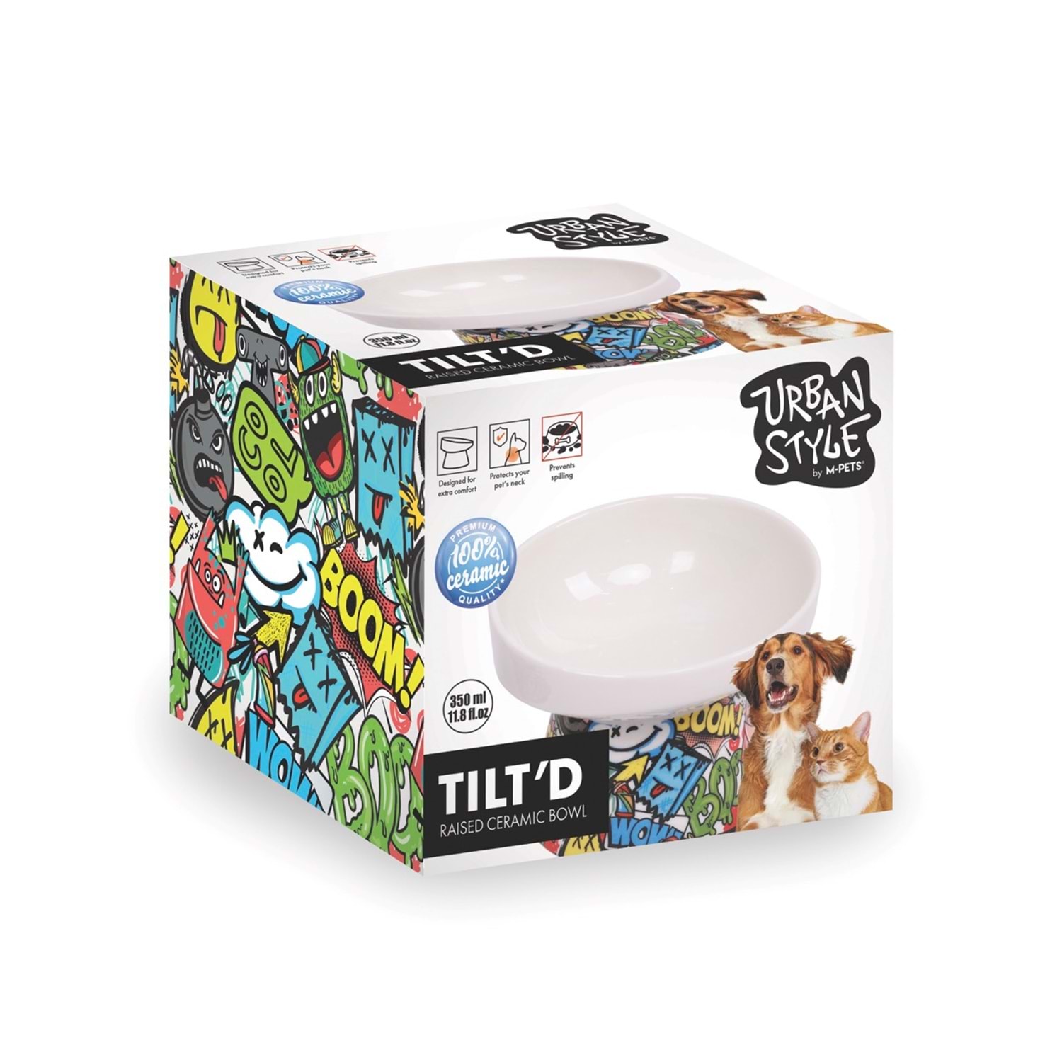M-PETS URBANSTYLE TILT’D, modern eğimli yapısıyla evcil hayvanların mama ve atıştırmalıkları daha rahat tüketmesini sağlar. Yükseltilmiş ve kavisli seramik tasarımı sayesinde boyun zorlanmasını azaltır ve ergonomik bir kullanım sunar. Kaymaz tabanı ve kolay temizlenebilir seramik yüzeyiyle hem hijyenik hem de pratiktir. Bulaşık makinesinde yıkanabilir. Mama ve atıştırmalıklar için idealdir.