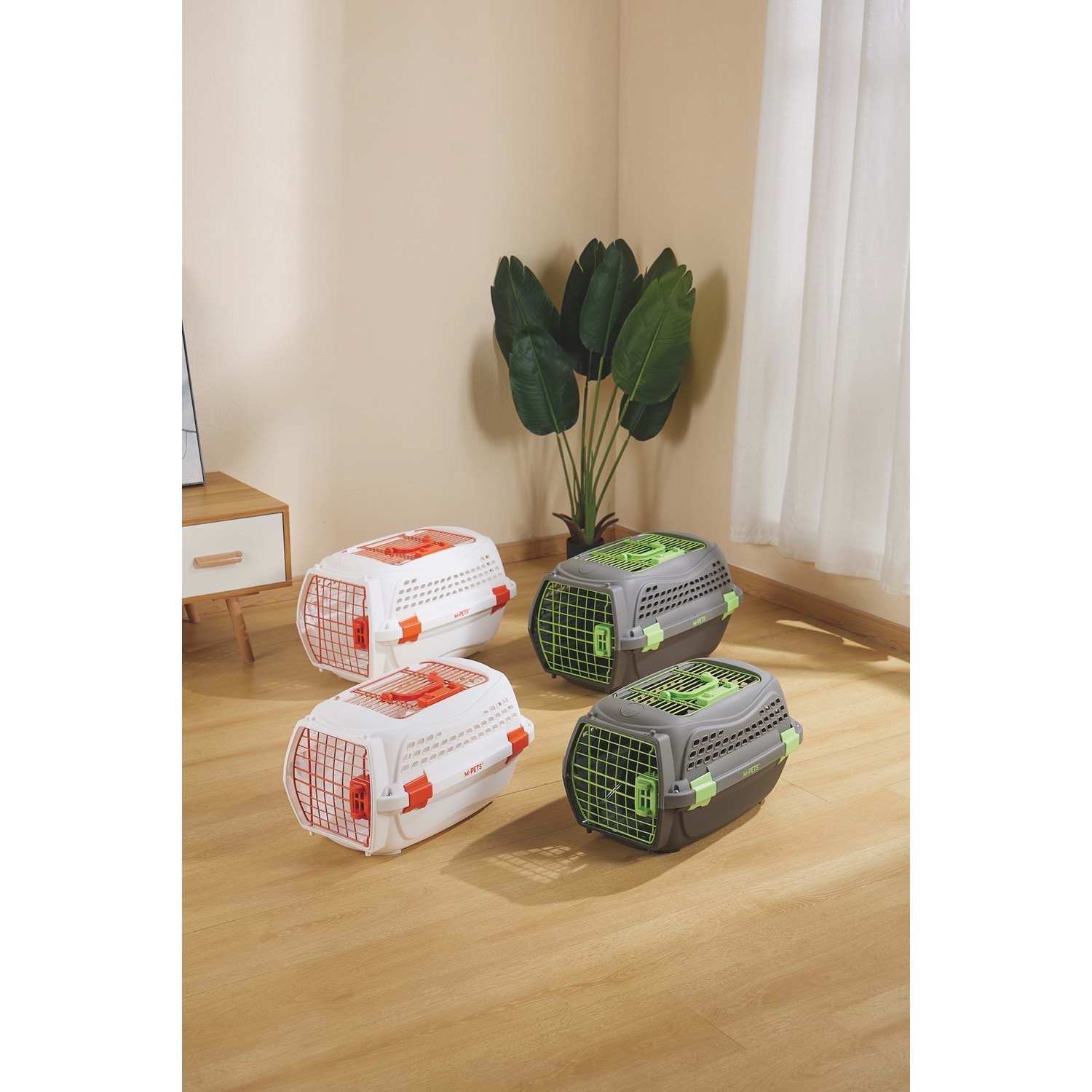 M-PETS ECO GIRO taşıma çantası, çevreye duyarlı evcil hayvan sahipleri için tasarlanmış, güvenli ve dayanıklı bir taşıma çözümüdür. %100 geri dönüştürülmüş plastikten üretilmiştir ve hem sağlam hem doğa dostudur. Üstten ve önden açılabilen kapakları sayesinde evcil hayvanınıza kolay erişim sağlarken, güvenlik kilidi ve taşıma sapı ile taşıma deneyiminizi kolaylaştırır. Beyaz ve turuncu renk seçeneğiyle modern ve dikkat çekici bir görünüm sunar.