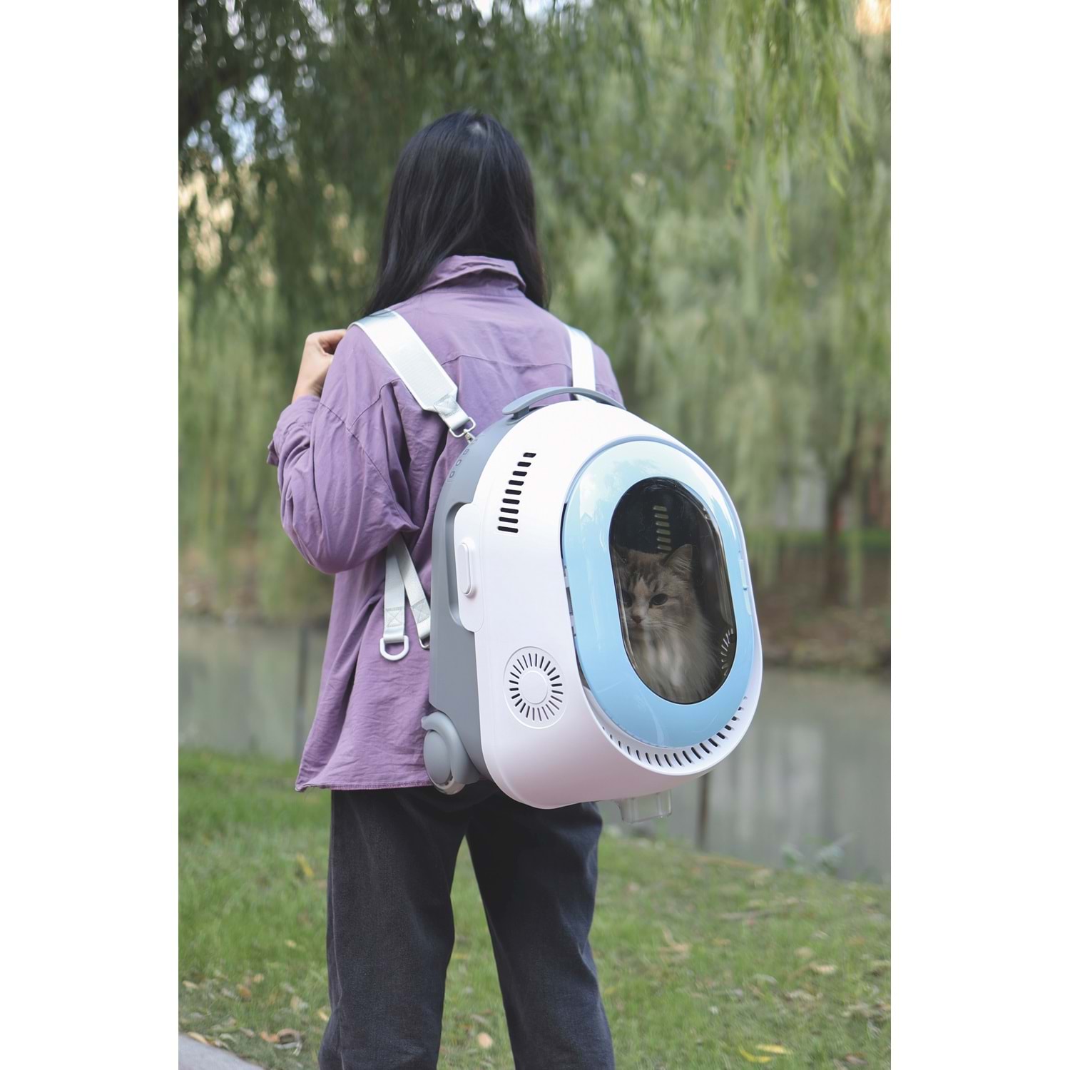 Dış mekan ve seyahat kullanımı için ideal olan M-PETS TROLLEY PET TRAVEL BACKPACK, çoğu havayolu şirketi tarafından koltuk altına yerleştirme için onaylıdır. Her iki yanda yer alan 7 büyük havalandırma deliği ve üstteki fan sistemiyle iç ortam sadece 20 saniyede havalandırılır. Şeffaf pencere sayesinde evcil dostunuz yolculuk esnasında dışarıyı izleyebilir. Yumuşak iç yapısı sayesinde taşıma sırasındaki konforu artırır ve gerektiğinde ev içinde yatak olarak da kullanılabilir. Dokunmatik kontrollü 2 adet LED gece ışığı sayesinde hem sizin hem de evcil hayvanınızın gece görüşü desteklenir. ABS ve PC malzeme karışımıyla üretilmiş olup suya dayanıklı, kolay temizlenebilir ve çizilmelere karşı dayanıklıdır. Powerbank ile çalışır (dahil değildir).