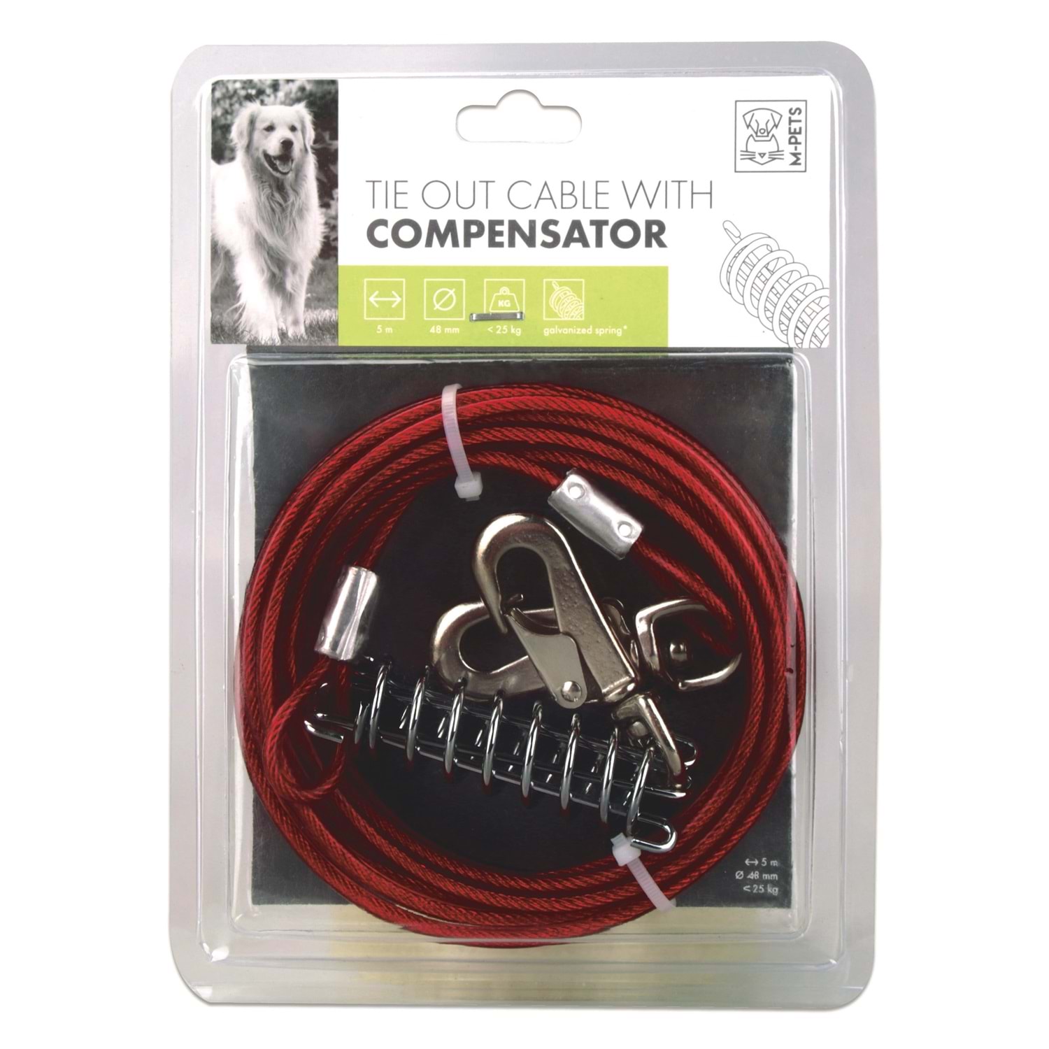M-PETS Tie Out Cable with Compensator, dış mekanda güvenli bağlama imkânı sunarken köpeğinizin sağlığını da koruma altına alır.