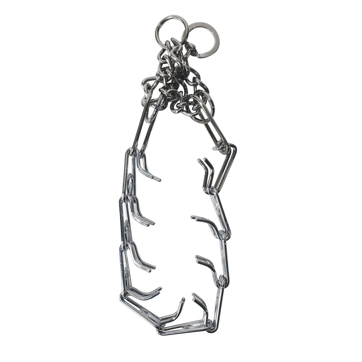 PRONG Training Collar, yönlendirme ihtiyacı duyan ve çekiştirme eğilimi gösteren orta boy köpekler için geliştirilmiş özel bir eğitim tasmasıdır. Parlak yüzeyi tüylerde leke bırakmaz, kaynaklı halkaları ve esnek yapısı sayesinde güvenli kullanım sunar. M bedeni, profesyonel eğitmenler tarafından önerilen ideal boyutlardan biridir.