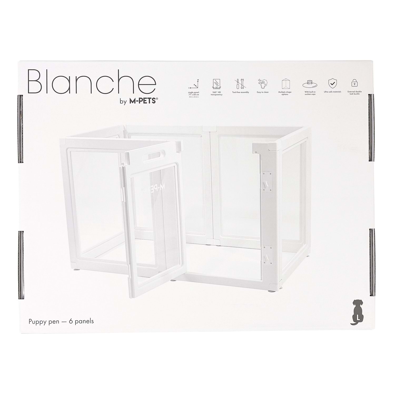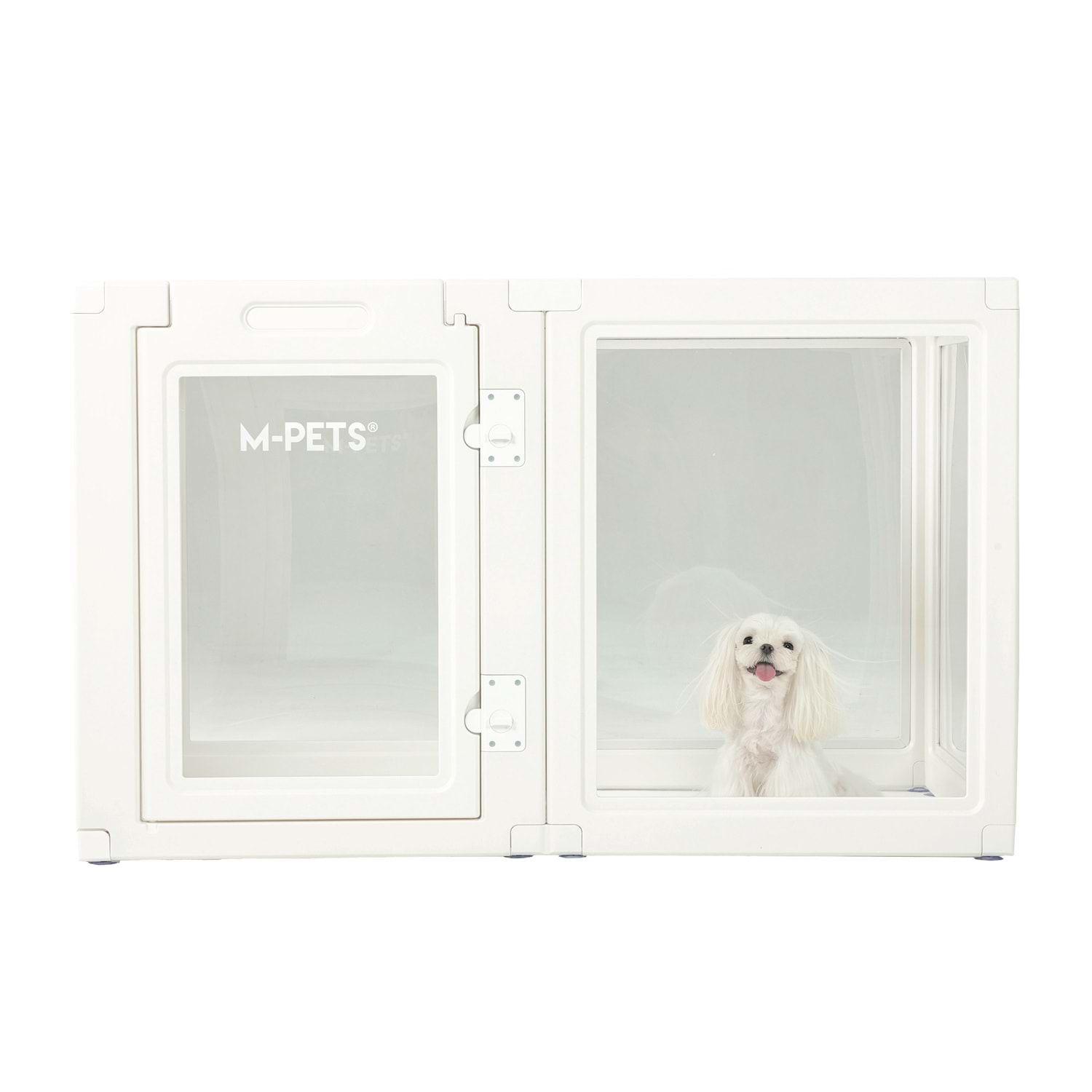 M-PETS BLANCHE oyun çiti, geniş iç hacmi ve 360° şeffaf panelleriyle evcil dostunuza hem güvenli hem de konforlu bir alan sunar. Modern ve minimal tasarımı sayesinde ev dekorasyonuna kusursuz uyum sağlar. Büyük ırklar ve daha fazla alan ihtiyacı olan evcil dostlar için ideal bir çözümdür.